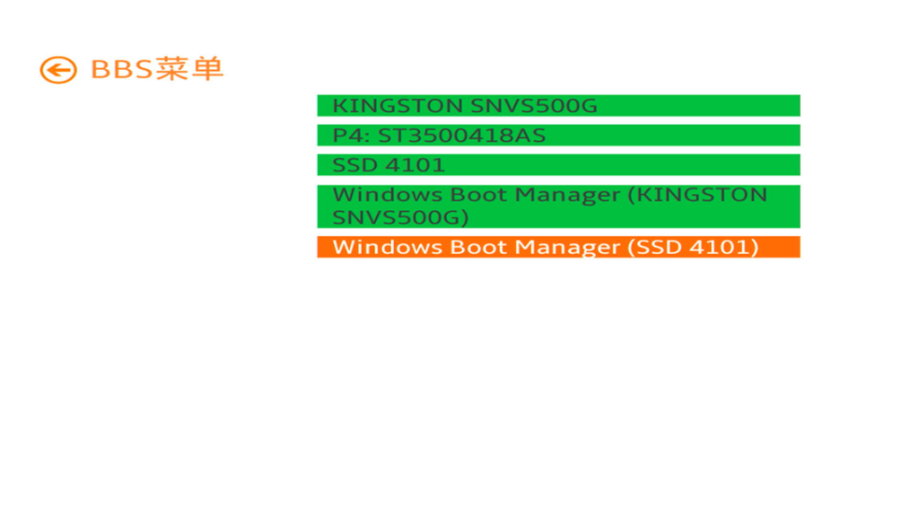 进入BBS菜单后 选择你的PE盘 回车