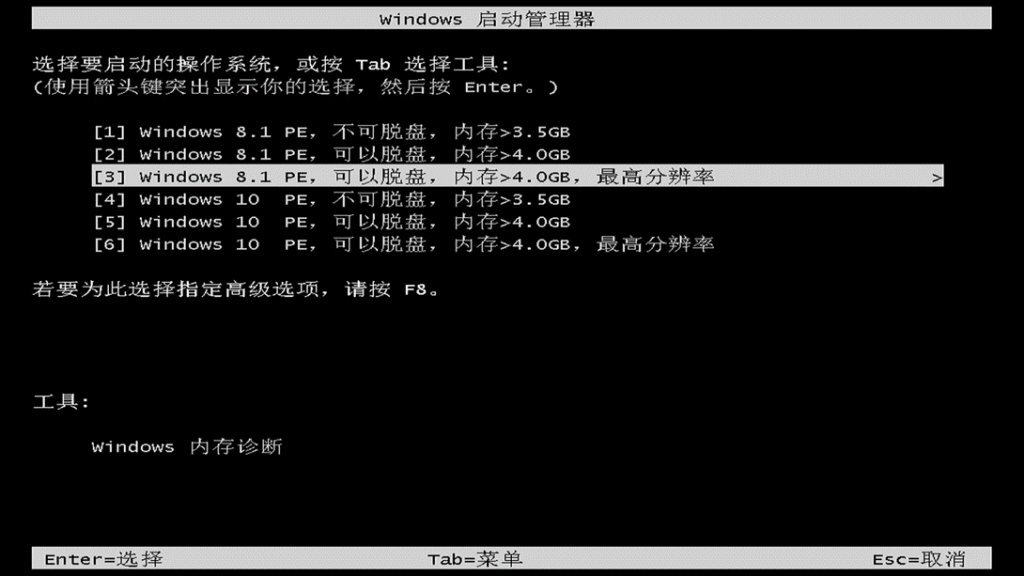 这里的PE选择看个人习惯 我一般推荐是第三个 8.1PE可脱盘最高分辨率