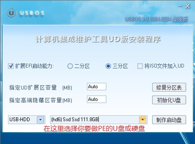 先下载USBOS的制作工具 推荐下载最新的增强版