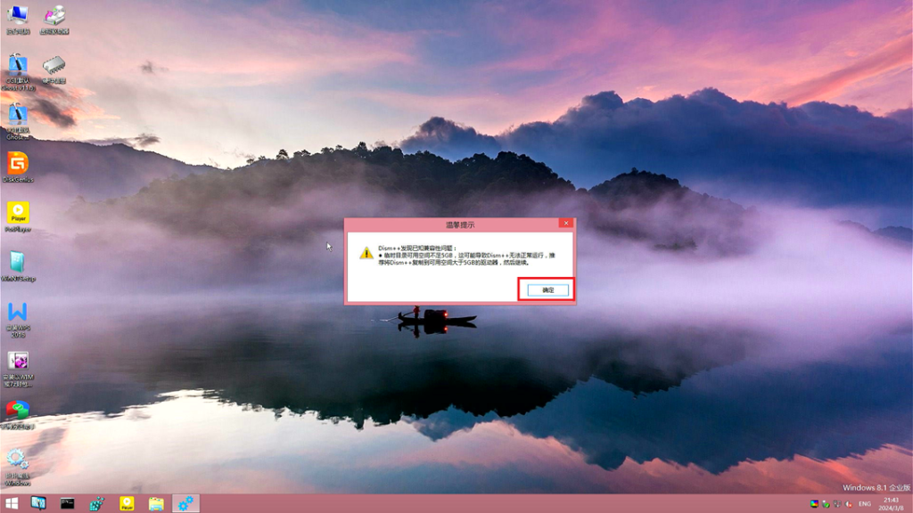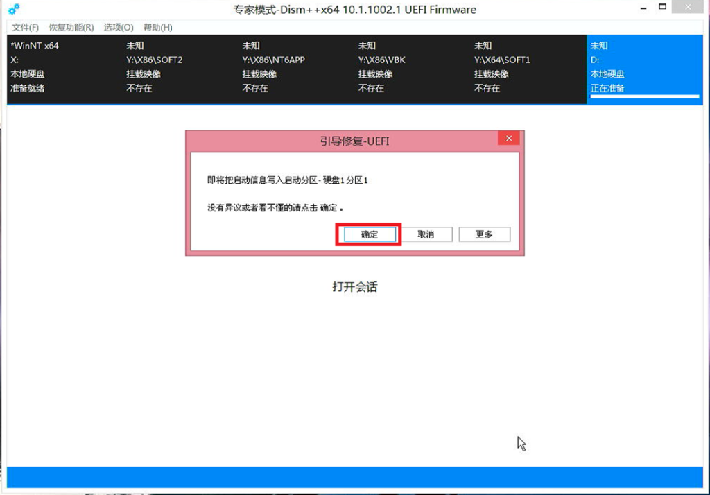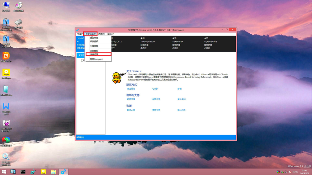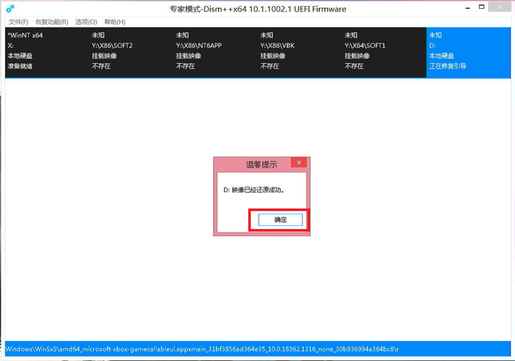 等到出现还原完成的提示后 点击确定 并关闭Dism++