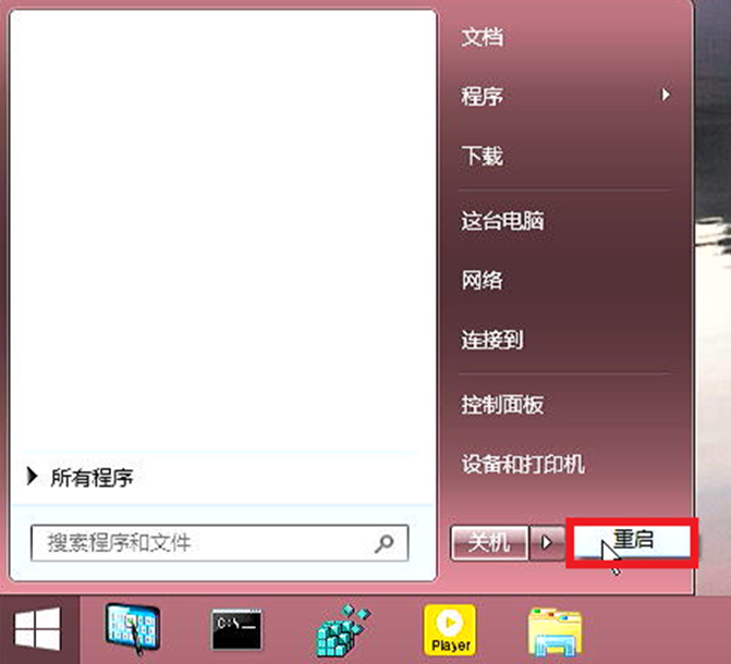 然后拔出PE盘 并打开开始菜单 重启电脑