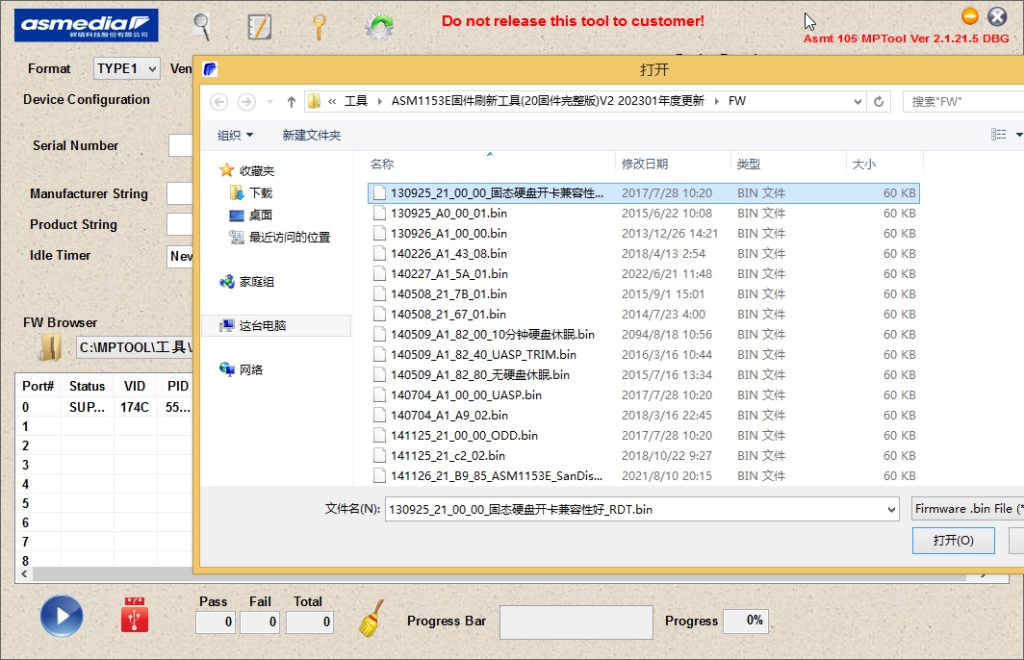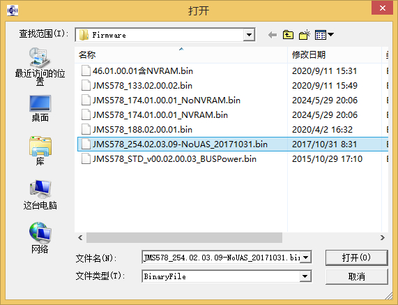 然后在弹出的窗口中找到刷固件工具所在路径中Firmware文件夹中的这个NoUAS固件 并双击