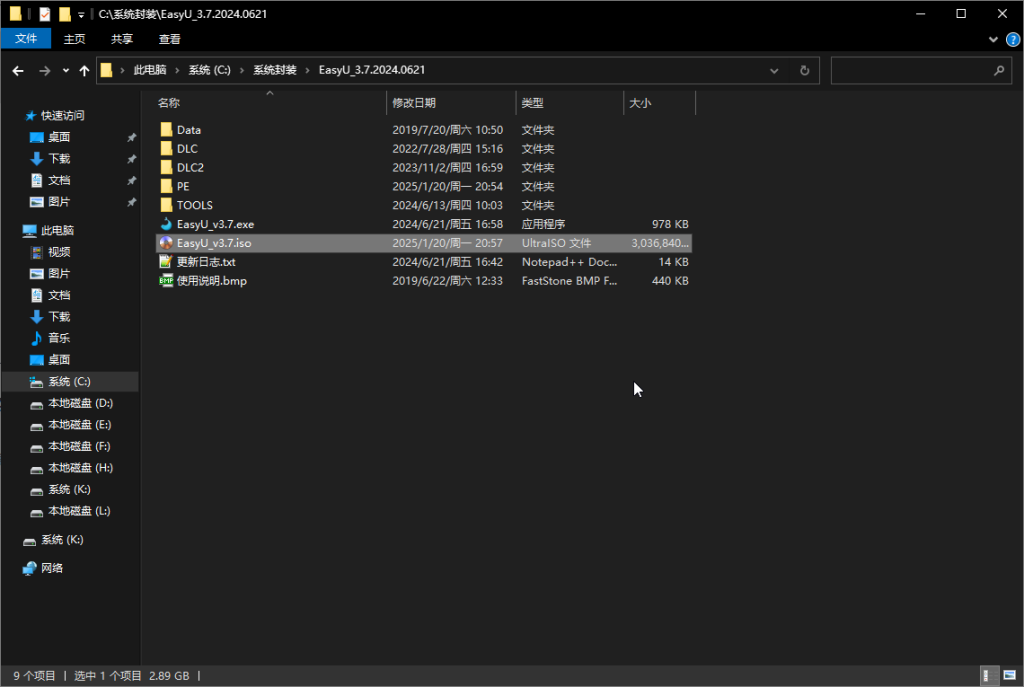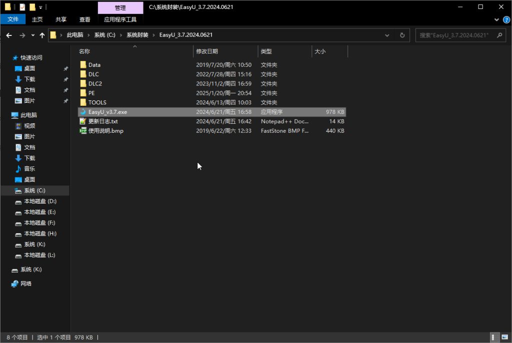 选择前面生成的PE的ISO 直接下载合集链接的自己在那一堆文件中找到EasyU_v3.7.iso