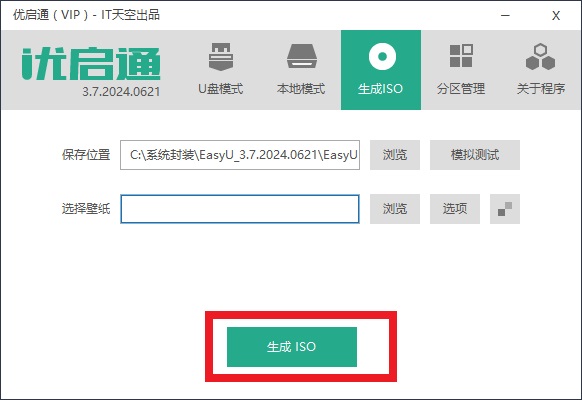 下载好pe后 这里使用的EasyU要手动生成iso文件