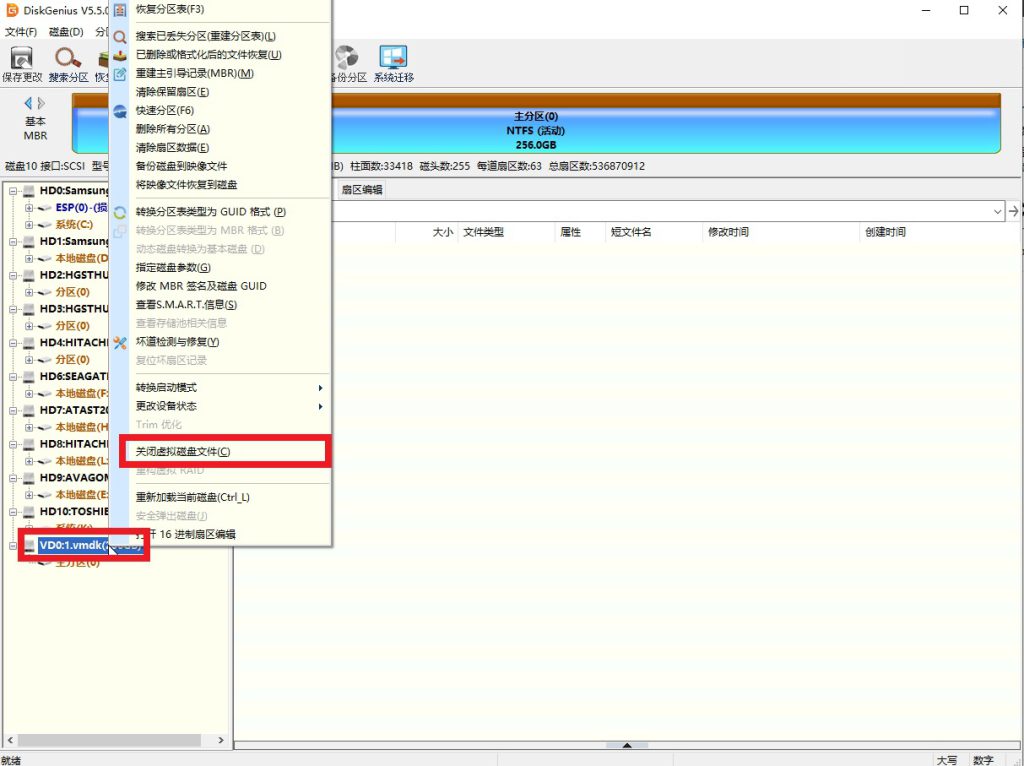 右键这个虚拟磁盘文件 关闭虚拟磁盘文件