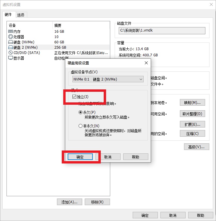这里路径随便填 建议有100g左右的空闲 把适配器类型改成SCSI