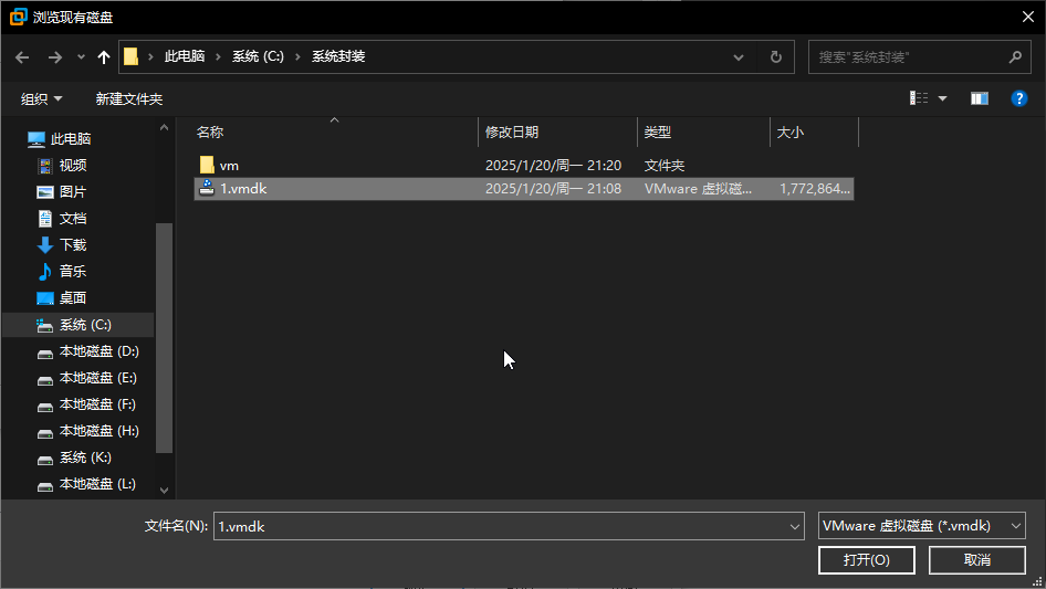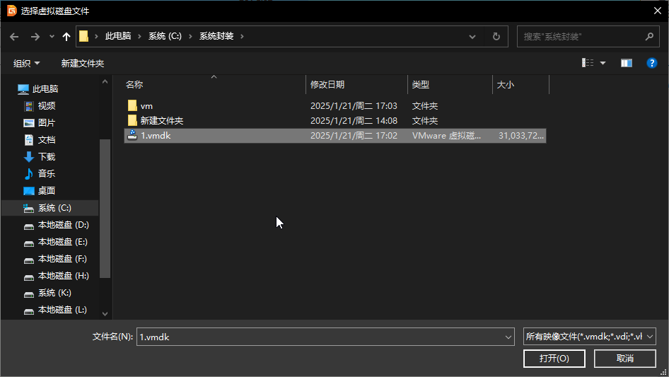 然后把下载好的系统 生成一个ISO或者虚拟磁盘 我这里直接创建虚拟磁盘了