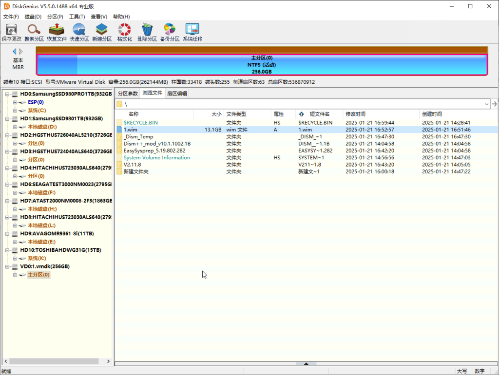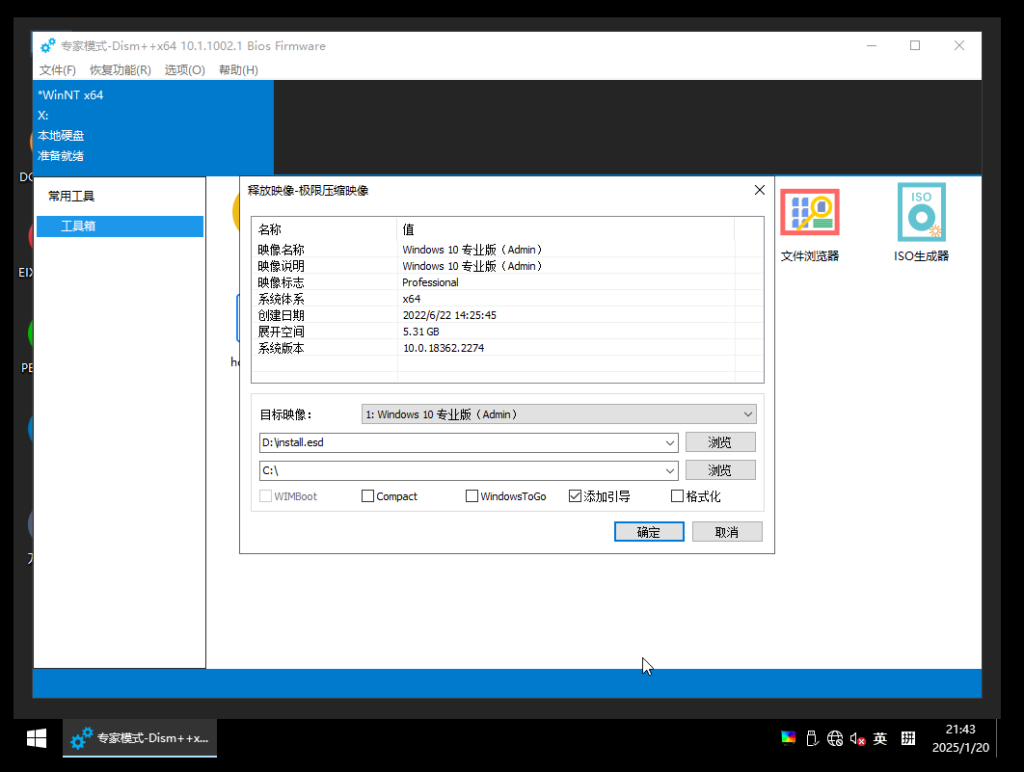 然后直接把这个install.wim或esd拖入到dg的浏览文件窗口中