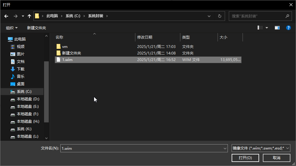 然后找到刚才下载的系统母盘 为wim或esd格式