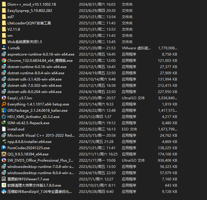 然后按照同样的方式 把所有后面要使用的工具和要安装的软件复制到这个虚拟磁盘中