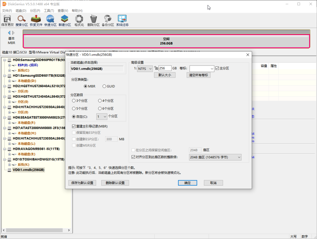 这里选 主磁盘分区 其他啥也不用改 然后点确定