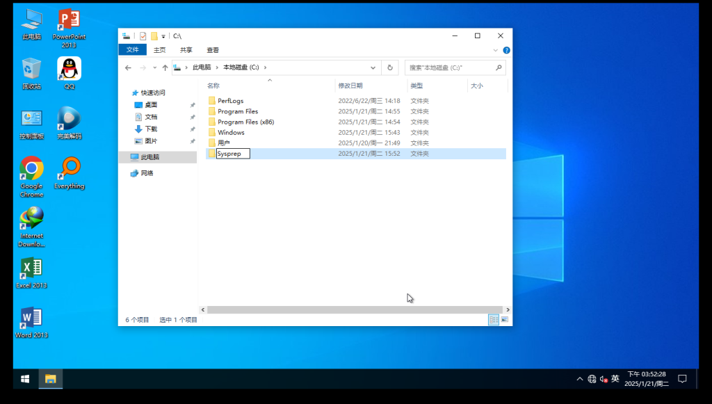 在系统盘根目录下创建一个名为Sysprep的文件夹(此文件夹会在系统部署完成后自动删除)