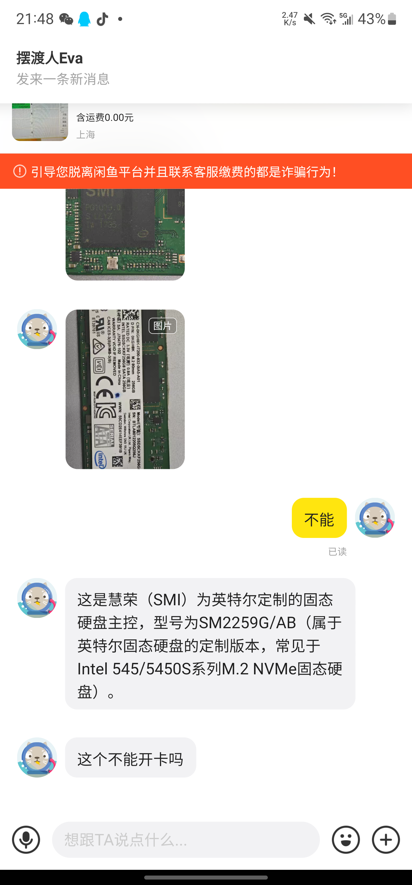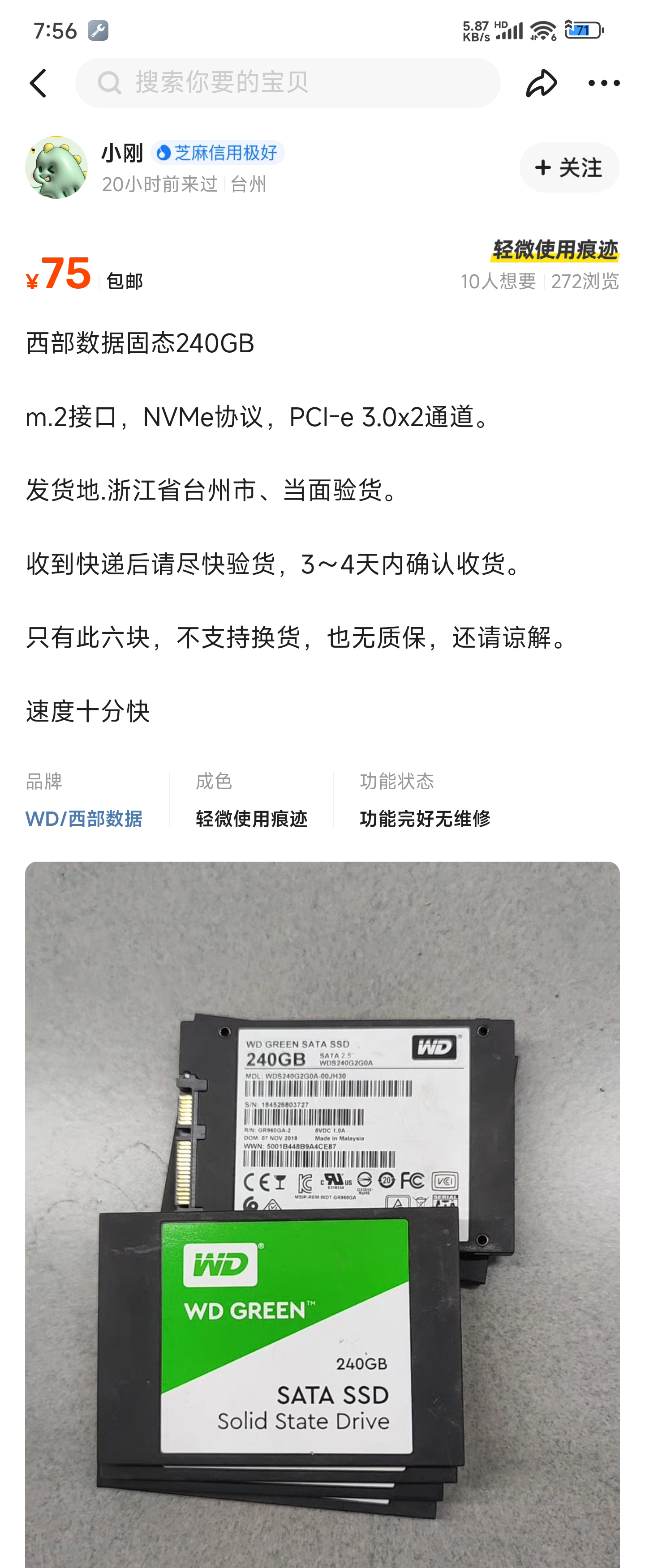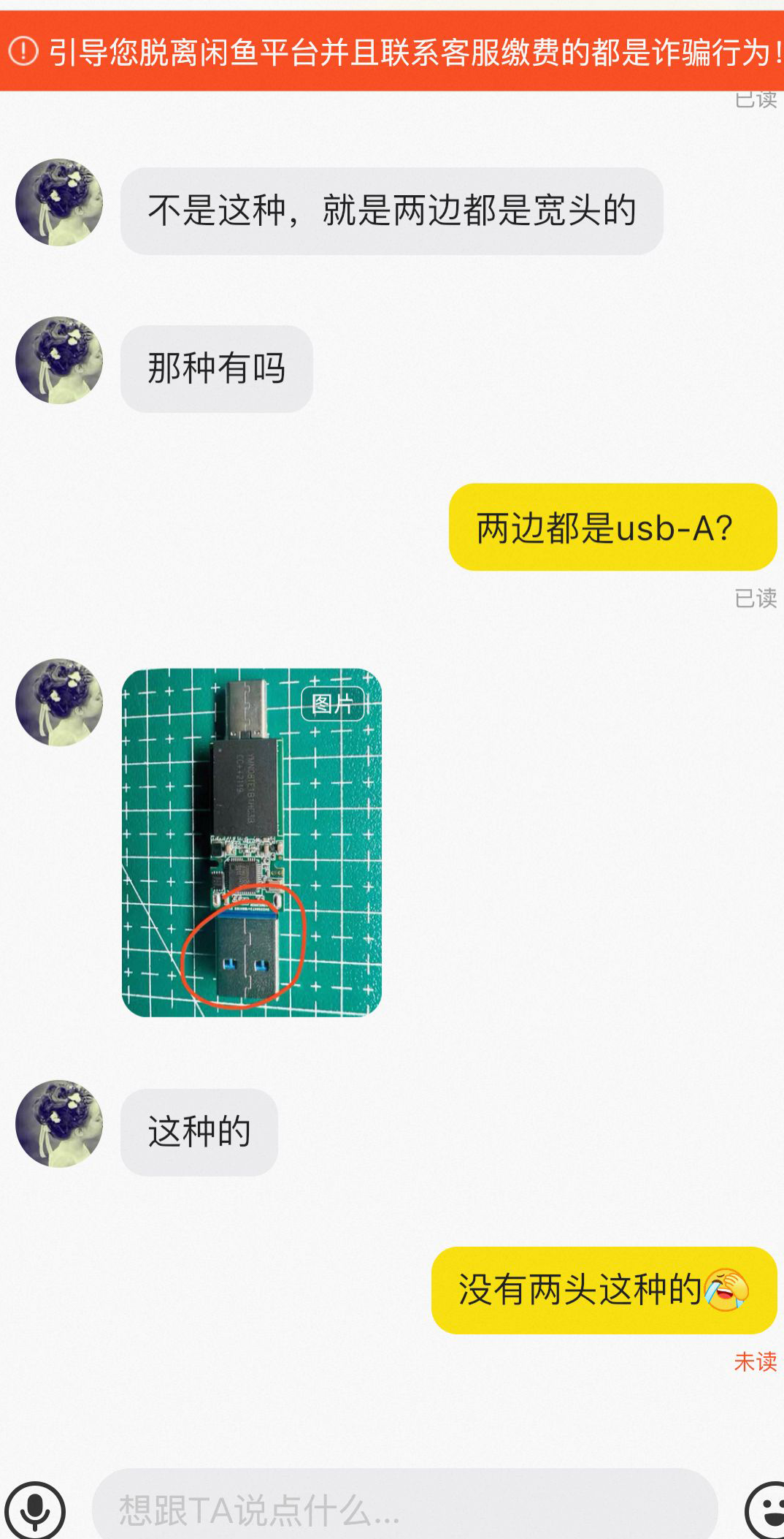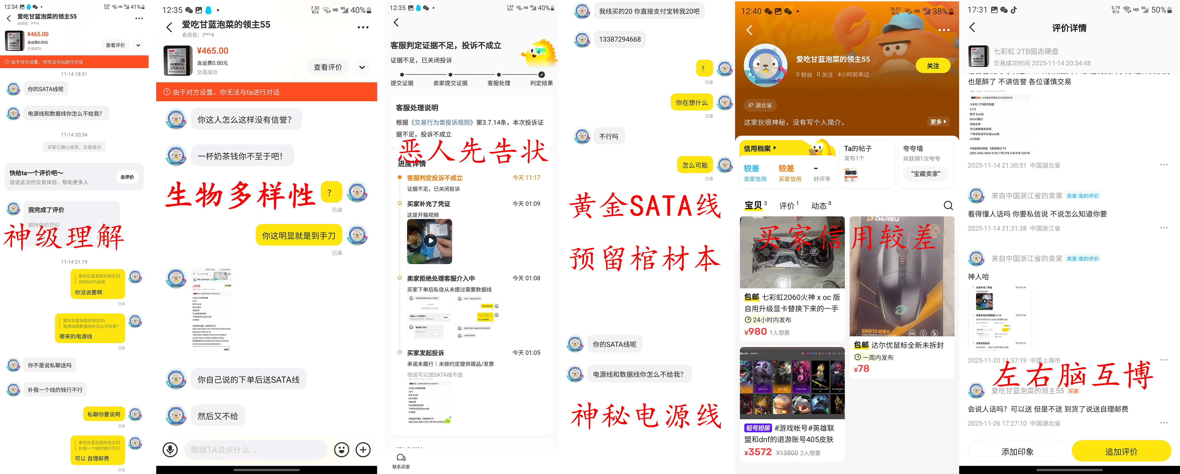 《闲鱼买家生物多样性》 2025-11-20 14:24 | 163 | 1 | SSD开卡 174 字 | 1 分钟内 前情提要:以下内容可能引人不适 请谨慎观看 黄金SATA线 小刀 诚心要 意义不明 神秘速度单位 不识别的硬盘 真的能用吗 真货有真货的价格 假货有假货的价格 无法沟通 反复强调 Nvme版2259 固件没坏软件坏了 难以理解 神奇U盘 迷之自信 不明协议 逆天交换 锻炼技术 双头USBA 超高速率 液态U盘 有缓59XT 预装系统 非常不满 固件在板子上 看不见图片