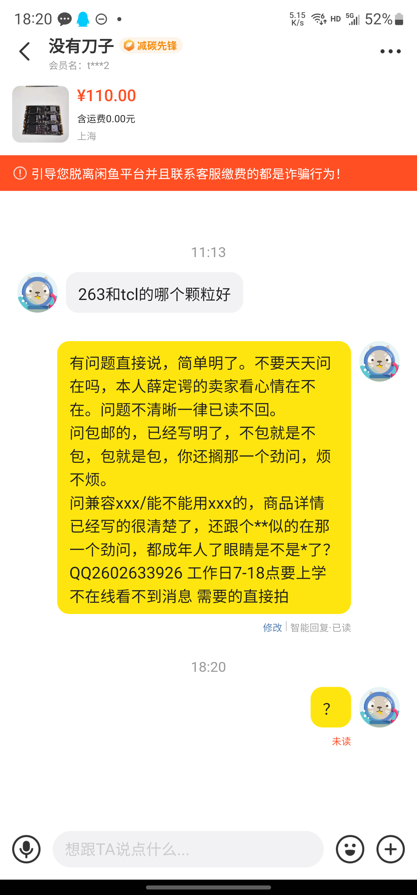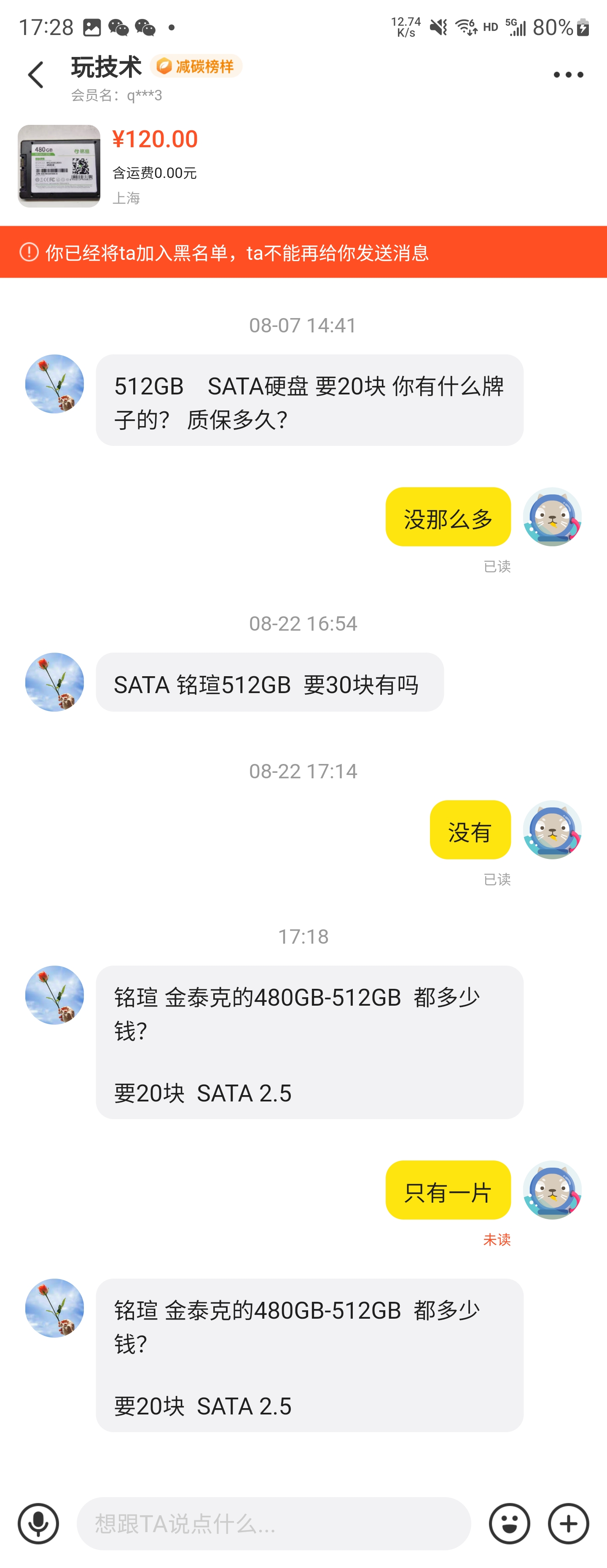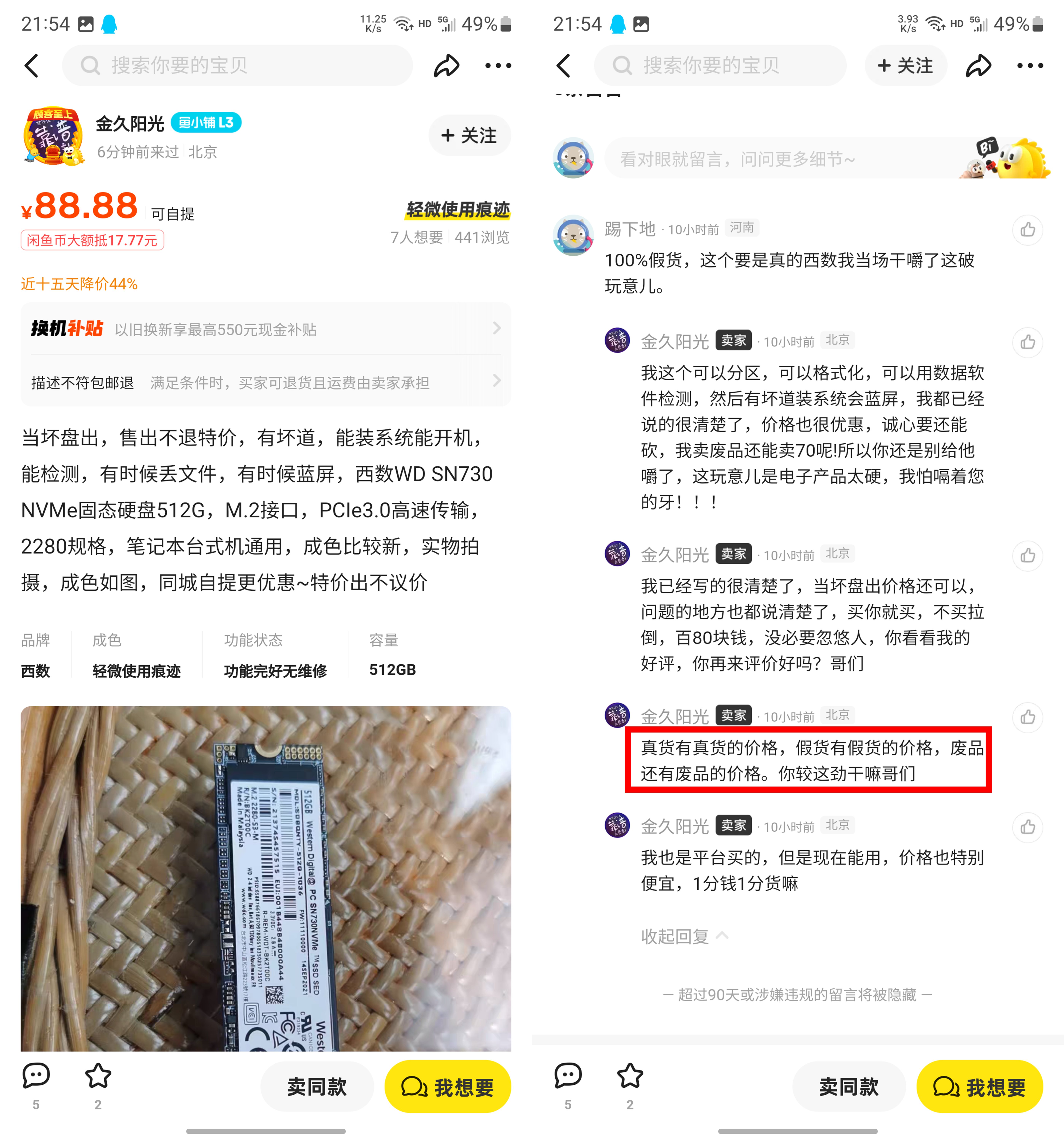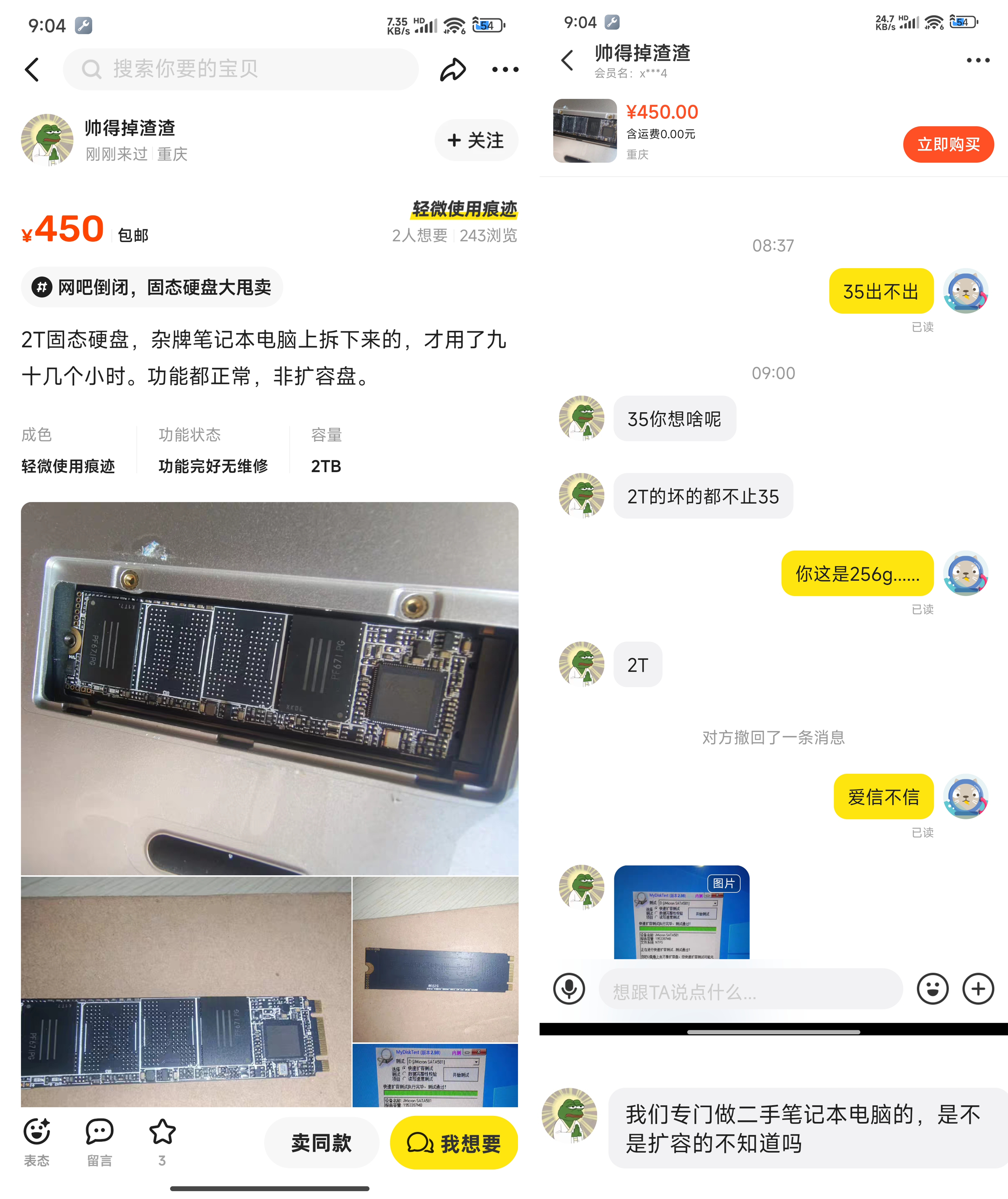 《闲鱼买家生物多样性》 2025-11-20 14:24 | 163 | 1 | SSD开卡 174 字 | 1 分钟内 前情提要:以下内容可能引人不适 请谨慎观看 黄金SATA线 小刀 诚心要 意义不明 神秘速度单位 不识别的硬盘 真的能用吗 真货有真货的价格 假货有假货的价格 无法沟通 反复强调 Nvme版2259 固件没坏软件坏了 难以理解 神奇U盘 迷之自信 不明协议 逆天交换 锻炼技术 双头USBA 超高速率 液态U盘 有缓59XT 预装系统 非常不满 固件在板子上 看不见图片